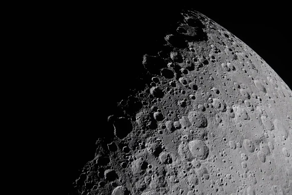 - Ziemska iluminacja: Podobnie jak na szerszych planach, tutaj również szczegóły powierzchni Księżyca są widoczne dzięki światłu popielatemu. Ziemia zadziałała jak gigantyczne lustro, doświetlając mroki księżycowej nocy na tyle mocno, by sensory kamery Oriona mogły zarejestrować rzeźbę terenu.